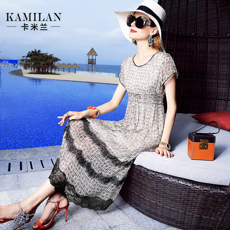 一款优雅的长裙,穿着很是飘逸,是腿型不好看和腿部妹子的福利。领口的花边设计让mm穿着更显唯美气质。简单的印花图案让mm穿着十分淡雅。裙摆的蕾丝拼接,增加了一丝成熟女人的气息,让mm穿着很优雅。腰间的收腰也显得mm的腰肢很纤细。