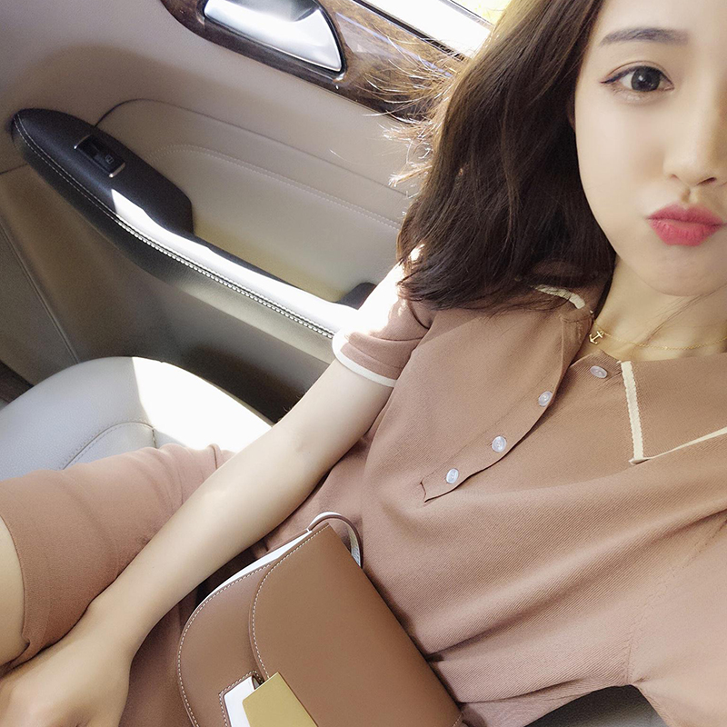 2017新款韩版学生直筒裙子女夏学院风冰丝针织polo连衣裙修身显瘦