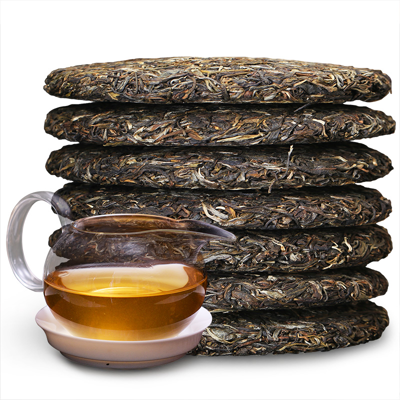 生茶是以云南大叶种茶树鲜叶为原料,经自然陈放,不经过人工发酵或“渥堆处理”,但经过特殊加工工艺制成的紧压茶。其外形色泽墨绿,香气清纯持久,滋味浓厚回甘,汤色绿黄透亮,叶底肥厚黄绿。生茶性偏寒,味略苦,饮之既有消暑解热之功,又具增添营养之效,不仅可以清理肠道,还有降脂,提神,降压和减肥功效,适合年轻人群。