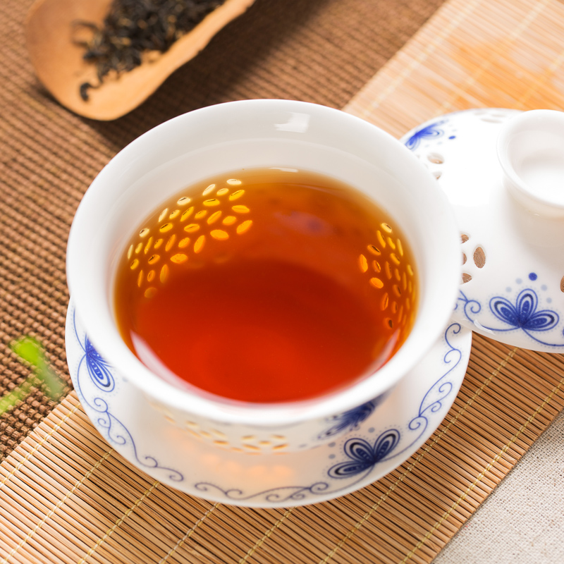 成品茶外形条索肥壮,紧结圆直,不带芽毫,色泽乌润,冲泡后汤色红艳浓厚,滋味醇厚回甘,具桂圆汤和蜜枣味,松烟香高长,活泼甘甜,叶底明亮,呈古铜色,叶张柔软,肥壮厚实,耐泡性好。