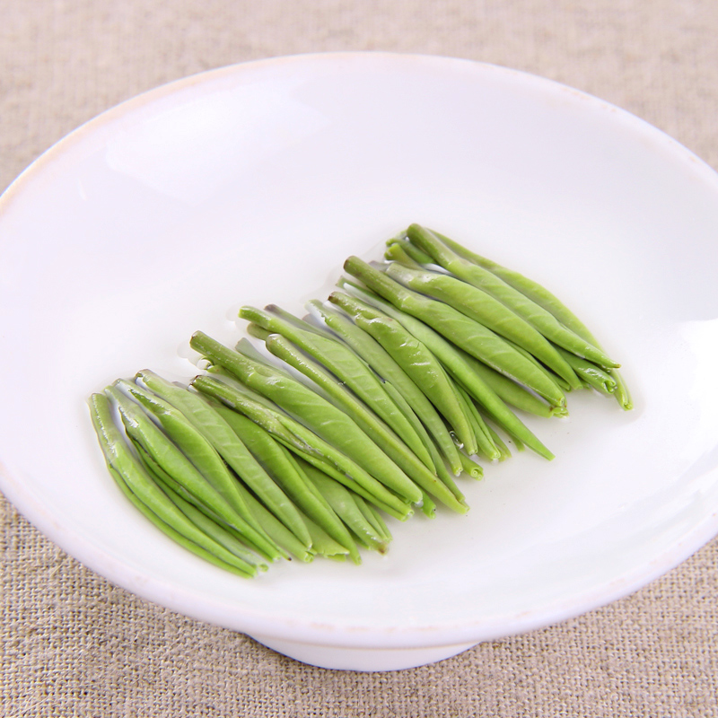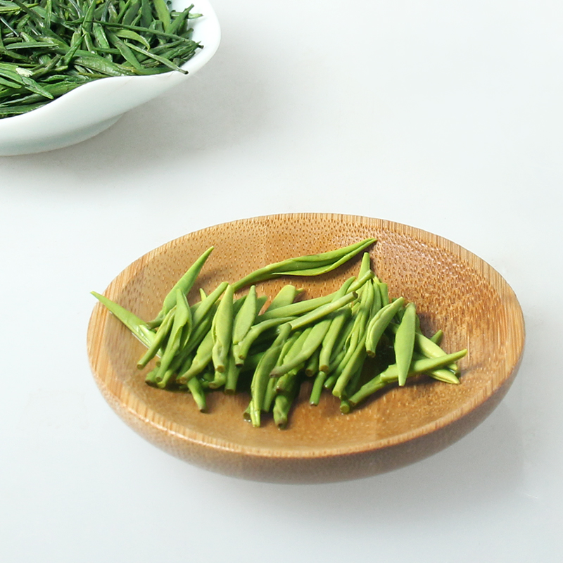 雀舌外形微扁挺秀,形似雀舌,色泽翠绿,银毫披露,香气高长馥郁,滋味醇爽甘甜,汤色绿亮,叶底嫩绿成朵,内含有效成分丰富。