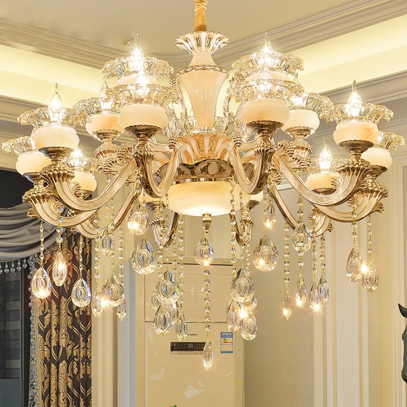 奢华铝合金,色泽透亮,历久不变色,铝合金灯臂,唯美的雕刻花朵,用料扎实,经久耐用,人工优质玉石灯罩,通透有质感,外观淋漓栩栩如生,光感华丽,尽显贵族气质