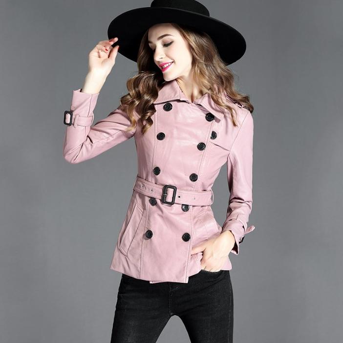 秋冬新款修身显瘦皮衣 ,经典两穿西服领造型,简洁大方,要不系带设计,显瘦遮肉肉,双排扣设计,彰显时尚个性,上身帅气休闲,干练有型。