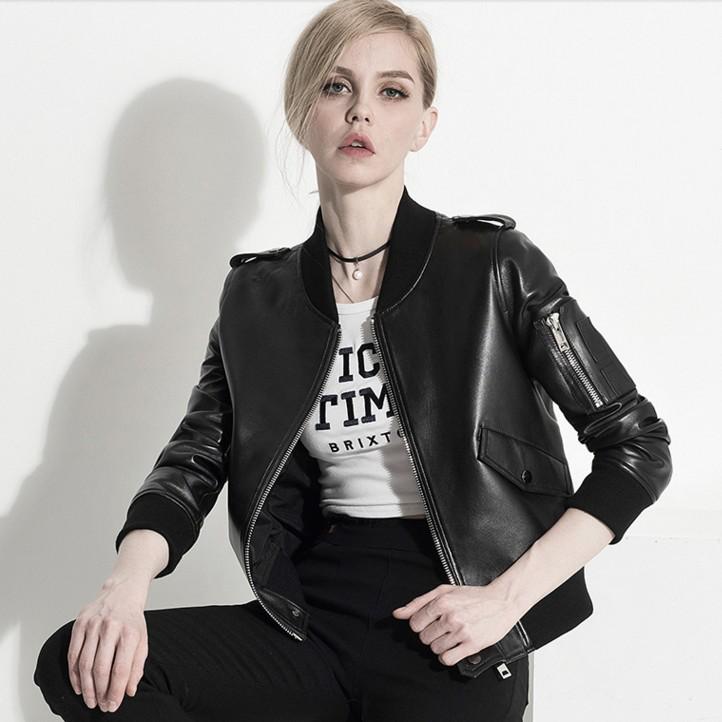 真皮皮衣女短款修身皮夹克,经典的黑色款式,简洁的版型,给人高冷的感觉,又骨子里透出满满的女人味儿。