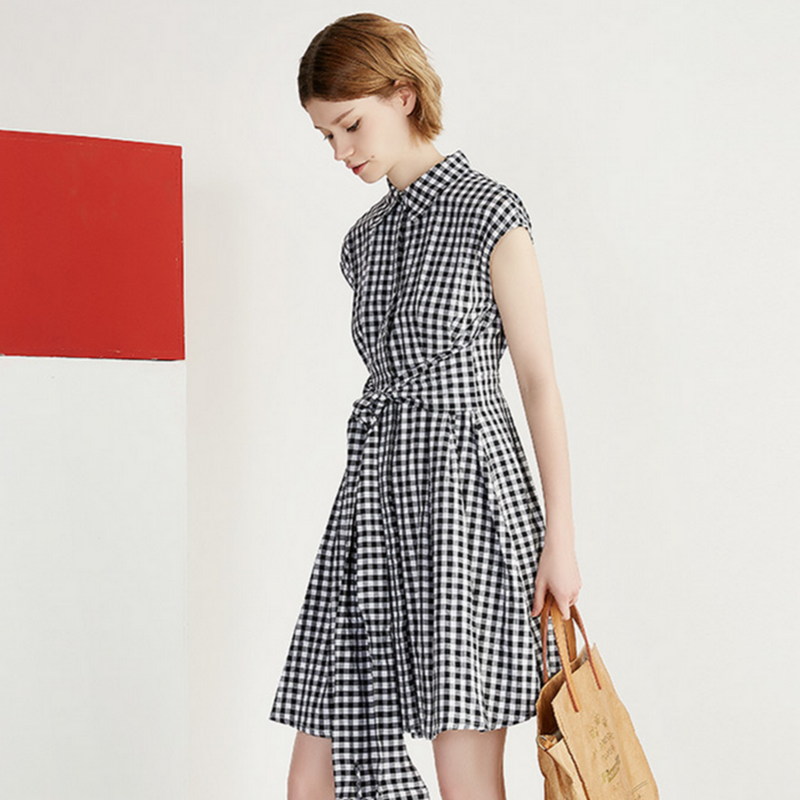 小格子有一定的复古风,这款连衣裙采用的是修身的款式,很喜欢他肩部的设计,加上翻领优雅迷人,腰部还有系带的设计,不仅看起来美观,而且显瘦效果也很好哟,腰间的带子不管是系在前面还是后面都是可以的。