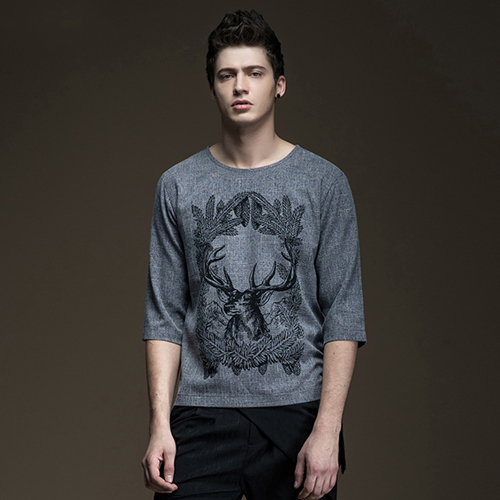 这一是款中袖T恤,独到之处在于穿上后不仅修身更显得文艺范,胸前个性的图案设计简单不花俏,更显身形,圆领落肩让人穿上之后把一种慵懒的气质散发,是贵气更是帅气!纯棉面料下垂感很强,让整个人显得更有王者风范!