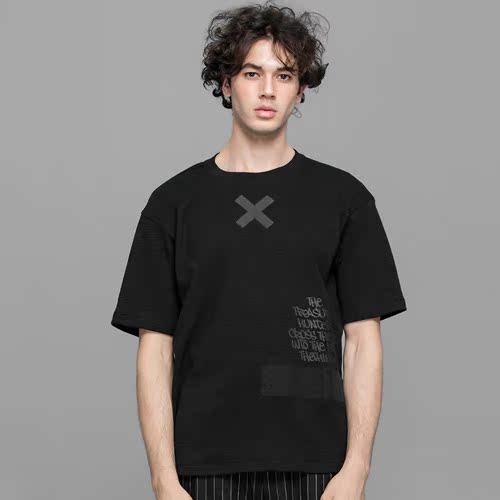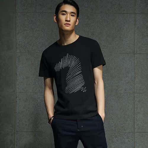 此款个性国潮刺绣bf风圆领t,采用黑色底色加上前胸横斜纹马头印花设计,上身后帅气十足,酷劲翻倍,面料舒适轻柔,让人不瞩目都很难,想展现男人的魅力,这件T恤少不了!