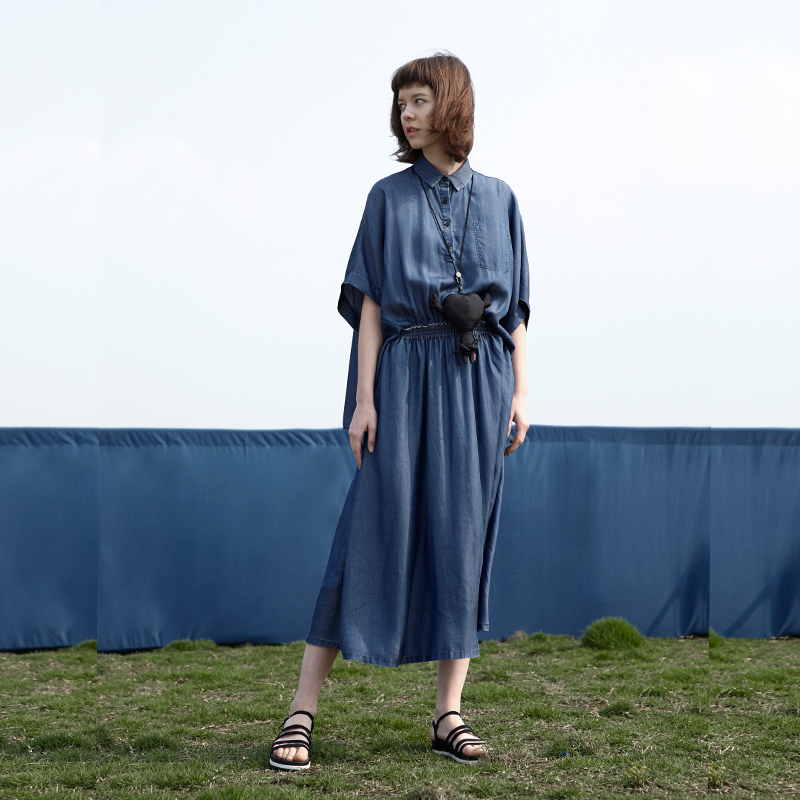 袖口宽松的设计让整体看起来格外的有个性,潮流感十足,大长裙设计更显腿长,舒适的牛仔面料,穿着舒适,收腰的设计,拉长整体的比例。配上小凉鞋怎么搭都是很时尚的哦,喜欢的话就赶快收藏起来吧。
