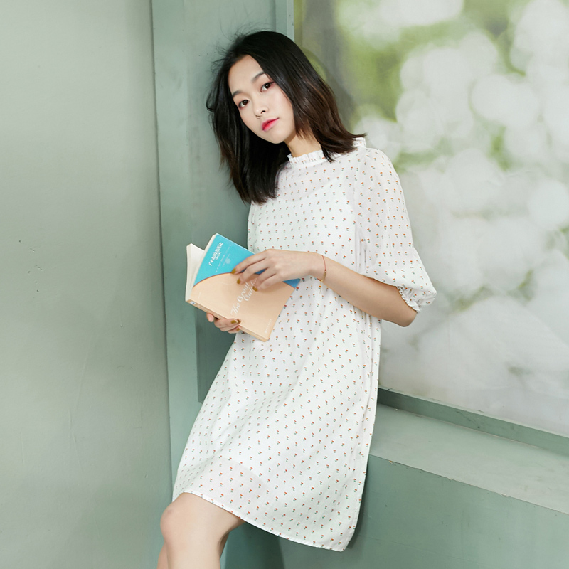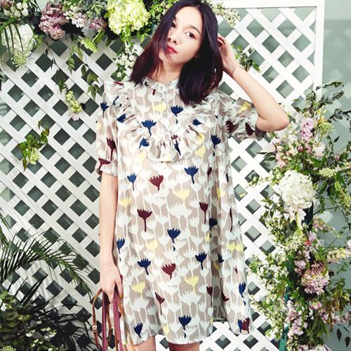 印花的连衣裙,再加上独特的版型设计,可以遮到很多肉肉哦,让你看起来格外的显瘦。还有独特的印花图片也是一道亮点哦,配上精致的小细节在胸口边添加的荷叶边领装饰,显得俏皮可爱又有看点。