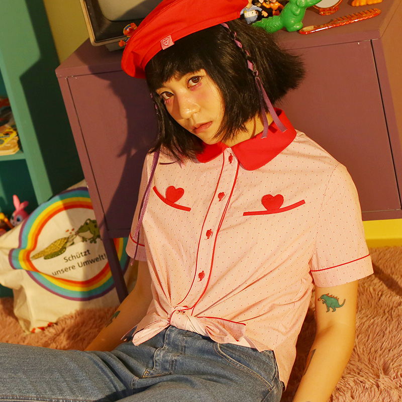 时髦又不落俗套,简单大方中增加了可爱的点缀,就让整体有了小清新的感觉,还有可爱的印花图片设计和系绳设计。就让你轻松穿出个性与俏皮。