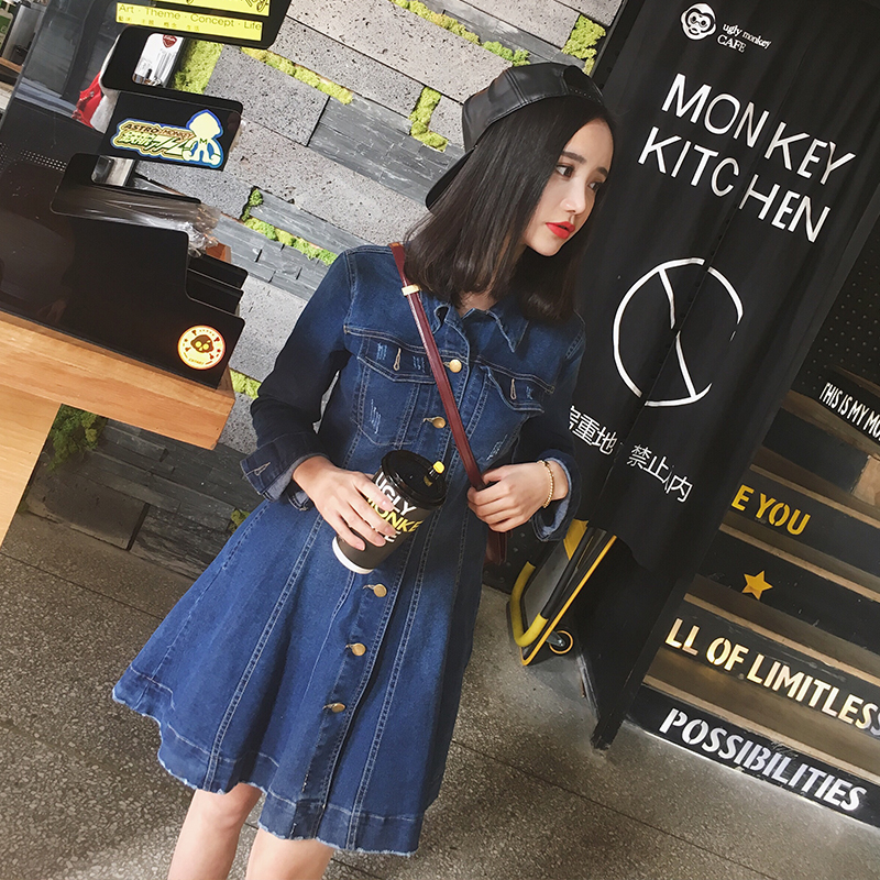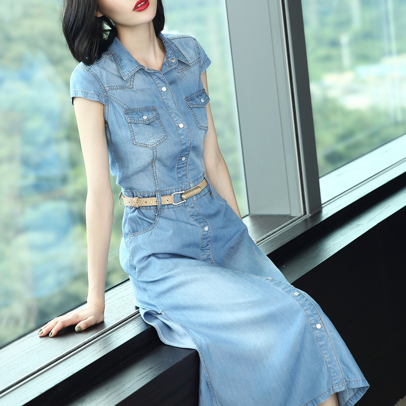 牛仔连衣裙的款式设计,独特新颖,走另类的时尚路线,薄款的设计,清凉舒适,A字裙的款式,经典怀旧的心情,惹眼迷人。