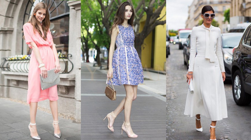 追求微性感的,吊带跟一字肩都是非常不错的选择。但需要注意的是细节,系带、荷叶边、蝴蝶结、印花都可以作为增色的亮点。当然,长款的排口衬衫裙以及泡泡袖连衣裙也都在细节之列。