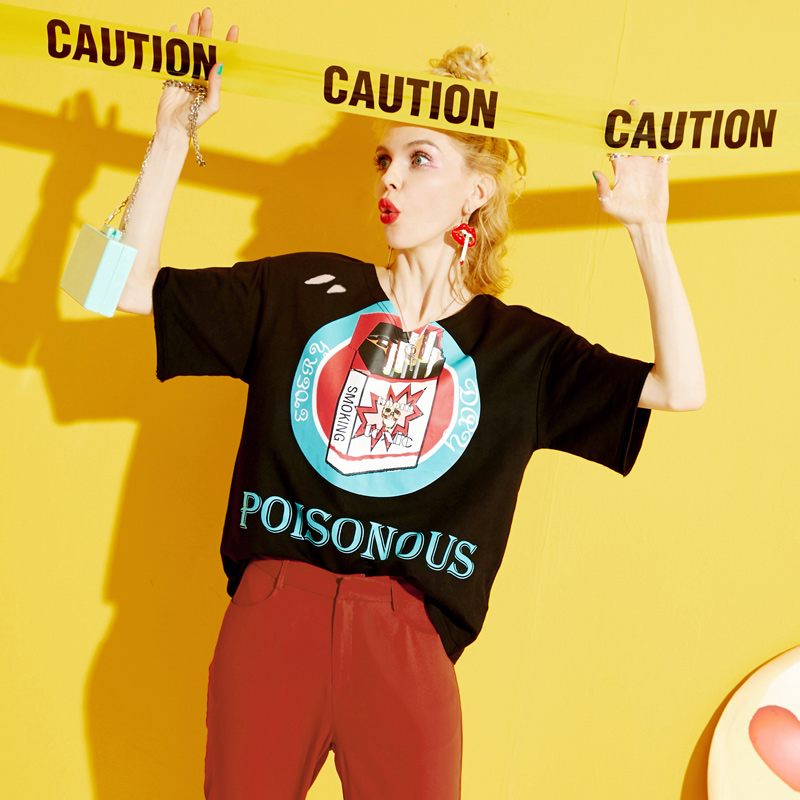 没什么理由,但是像中了魔法一样,想要疯狂买买买海报T也趣味性的印上poi-sonous字样,大概是复古印花有种TE殊地魔力会上瘾,朋克少女需要来一件满足自己叛逆的心。