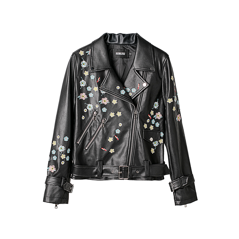 细节真的真的很会体现皮衣品质,看似不规则的小花刺绣散落在皮衣各处,其实是经过了精心的设计排版才达到完美的视觉体验,把率性可爱的风格体现的淋漓尽致。