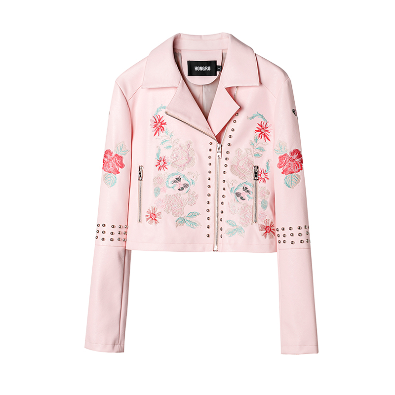告别固有的黑色主流皮衣款,潮流时尚的骚粉色来撩动机车控的少女心。铆钉叠层的大胆使用让衣服告别沉闷单调,大面积的刺绣花朵设计让皮衣活泼可爱起来,满满的少女心和酷酷的版型让机车菇凉“美酷”一整秋。