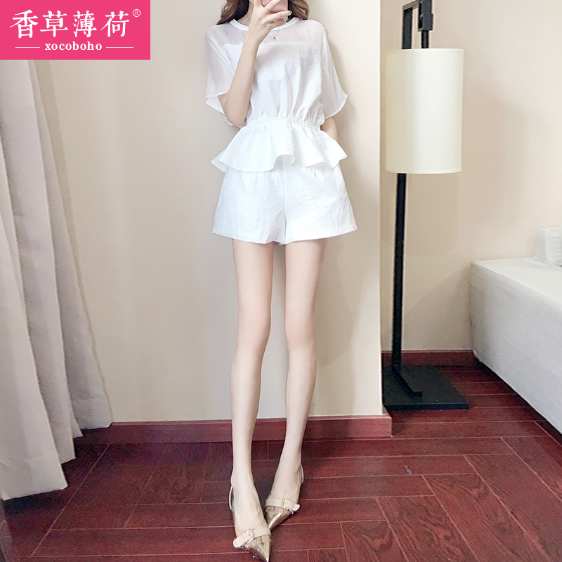 干净的白色配上气质的款型让衣服看起来非常有韵味,腰间的收腰荷叶边款式显瘦的同时也很甜美,搭配一套的短裤,完完全全的名媛范儿。