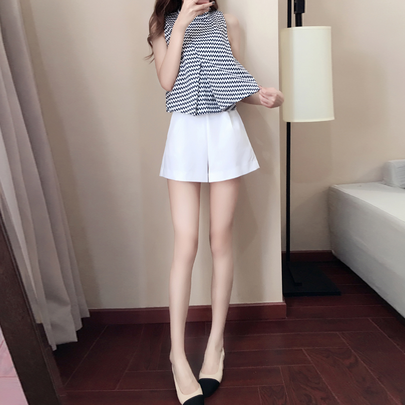 清凉感十足的无袖短款上衣,清新的花纹带来夏日的味道。搭配一条白色高腰阔腿短裤,时尚又洋气,整套的款式充满小香风的感觉哟。