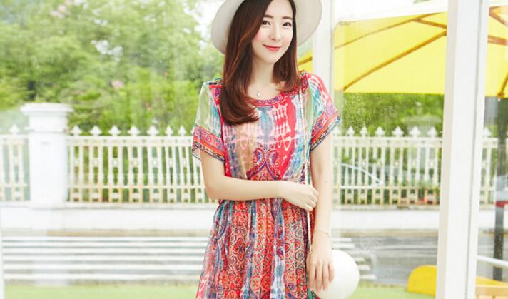 优雅的波西米亚长裙,轻盈飘逸,更显女人的清新脱俗。松紧收腰更显腰身纤细,富又异域风情的民族印花,展现你豆蔻年华半的清纯。