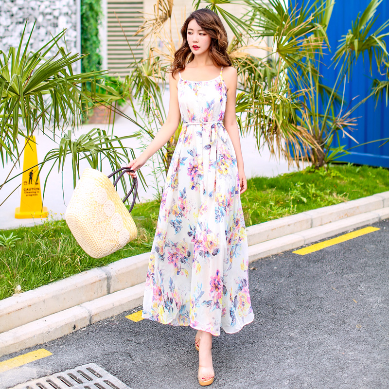 波西米亚吊带沙滩裙,让你展现温婉妩媚的小女人味。精致的无袖吊带露肩设计更显利索精美。印花的设计,恰到好处的展露出女人的婀娜多姿。海风飘过,大裙摆飘逸更显异地风情。