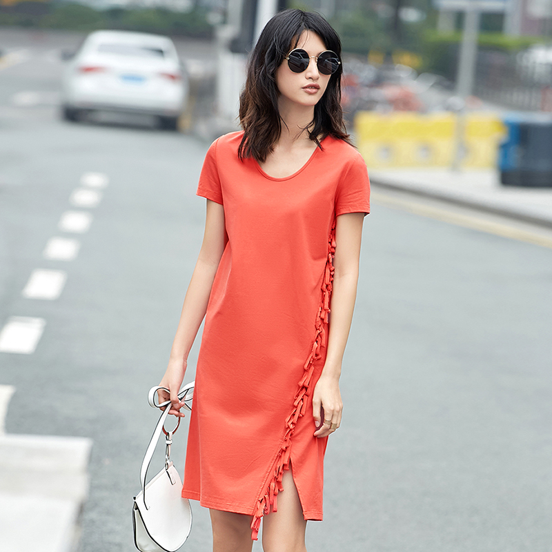 直筒设计是最遮肚子赘肉的,流苏开叉更是注入了潮流元素。
