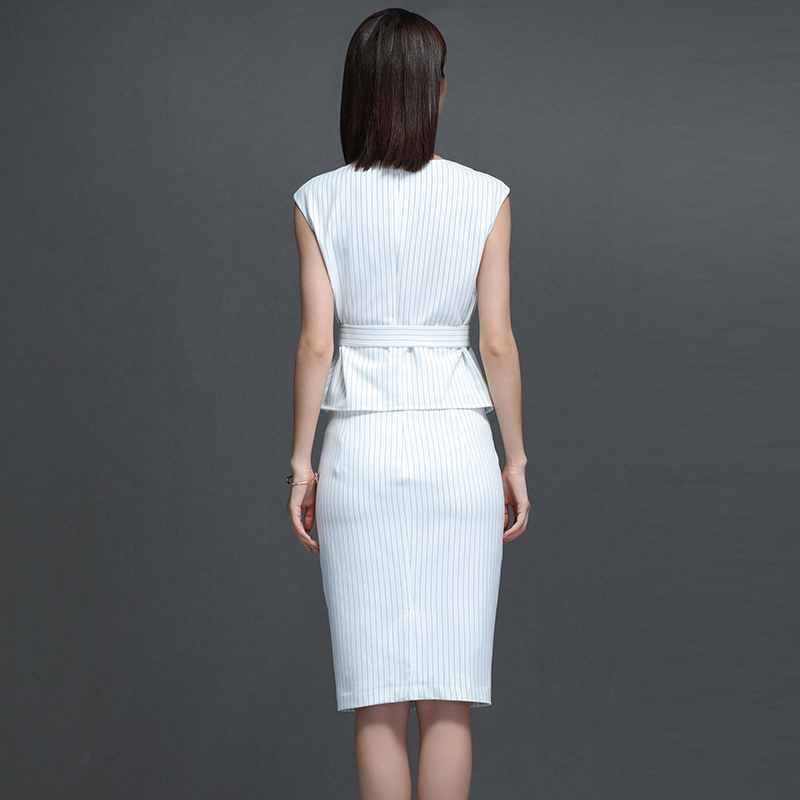 经典大方的白色调,百搭不过时,透着端庄典雅之美。时尚修身的版型,简单的优雅,视觉突出迷人的腰线,恰到好处的修饰身型,尽显职场魅力。经典圆领结合无袖设计,时尚大方更显气质,纯色的套装穿起来非常帅气、抢眼,让你展现女人独特的风采。