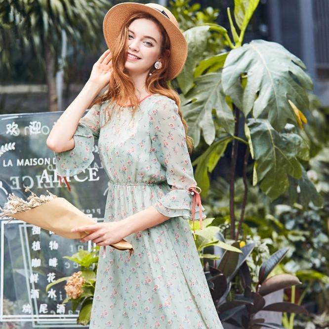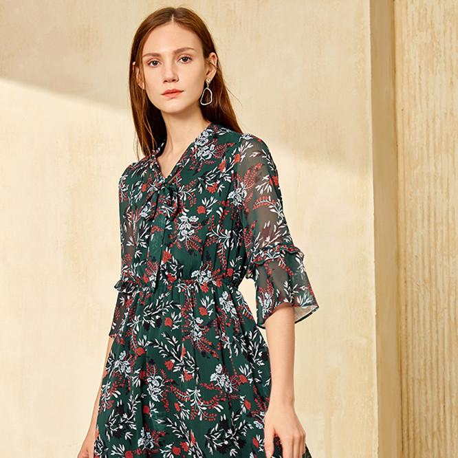 薄气质V领喇叭袖碎花雪纺连衣裙,气质决定高度,而品质决定气质,好的雪纺轻柔飘逸顺滑无比,复古印花唯美浪漫,举手投足间无限风情。
