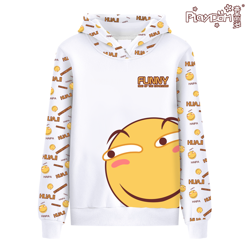 连帽的卫衣时尚经典,高质量的印花技术,滑稽表情颜色鲜艳饱满不容易褪色,出门请将滑稽带在身上(滑稽)。