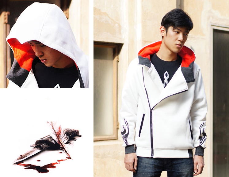 刺客信条既有游戏又有同名电影,粉丝可以说是很多的。这件衣服有黑色和白色两个版本,衣服的细节都很棒,连帽卫衣的形式非常的经典,平时日常生活也可以穿。