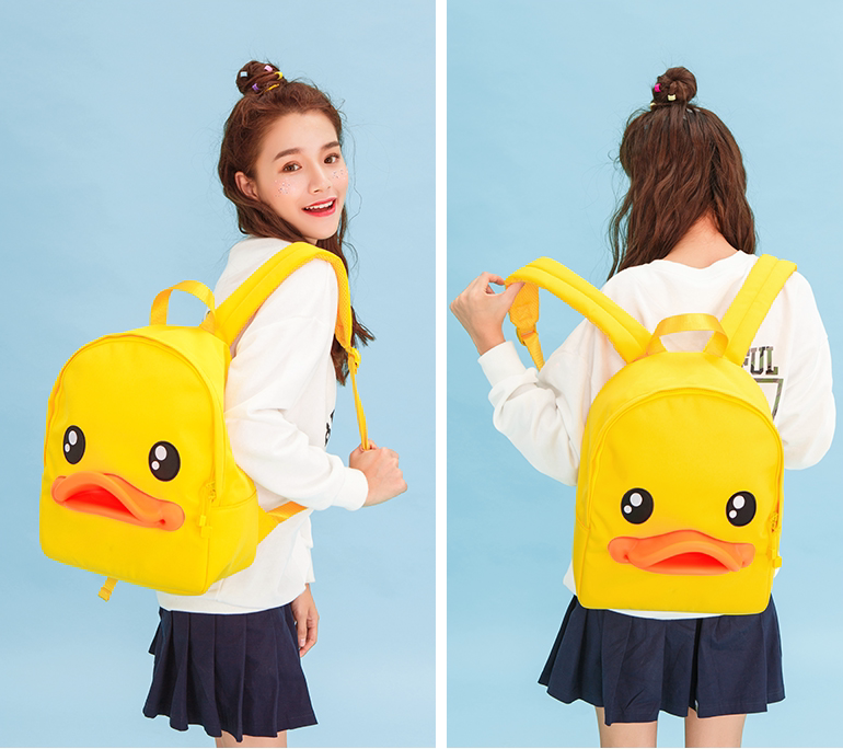 这个书包的外观非常的可爱,日常生活中也很实用。小黄鸭嘴部做了突出的设计,不仅可爱也很有立体感。