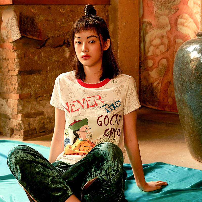 同样来自髦儿戏园系列,看似简单的T恤,实则蕴含深厚的文化底蕴,龙凤呈祥主题刺绣,红与白的经典碰撞,带给你不一样的穿搭体验。