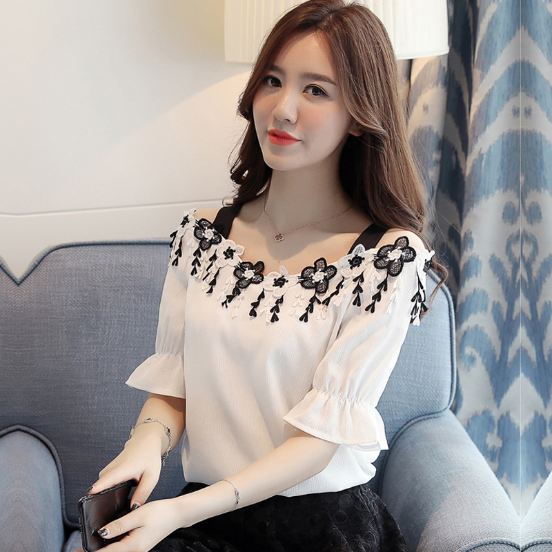 胖妹妹显瘦雪纺衫,打破传统圆领的设计理念,精致流行的木耳边修饰脸型,显得立体精致,肩部露肩的设计,保守中带着点小性感。