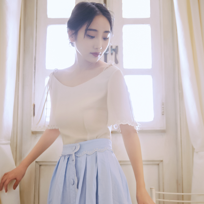 荷叶边的设计优雅又大方,彰显淑女气质,纽扣的门襟,穿脱也会很不麻烦,配上一条牛仔裤or半身裙,随便颜值都很高,担心太透的你,可以内衬一件背心吊带。