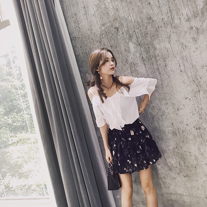 露肩设计很性感,绑带设计很时尚,雪纺衫的碎花设计更是流行元素的体现,简单时尚好看。 整体的设计当然还是秉承简约的设计风格,不过分修饰,用简单的蝴蝶结彰显个性,狂放不羁。