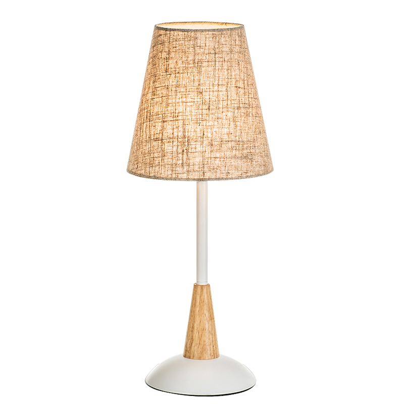 现代简约风格的一款台灯,适合搭配不同的家居风格,铁艺的灯柱搭配实木的点缀之后,显得十分清新时尚,手工缝制的灯罩,十分美观耐用,柔软的布料透出来的灯光柔和不刺眼。