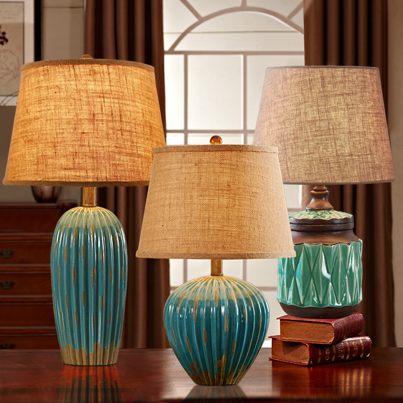 美式风格的一款台灯,蓝色的陶瓷灯柱经过精细的雕刻之后,造型十分精致美观,采用的优质布艺灯罩,触感柔软细腻且透光出来的灯光柔和不刺眼,摆放在家中,也是一件精美的装饰好物。