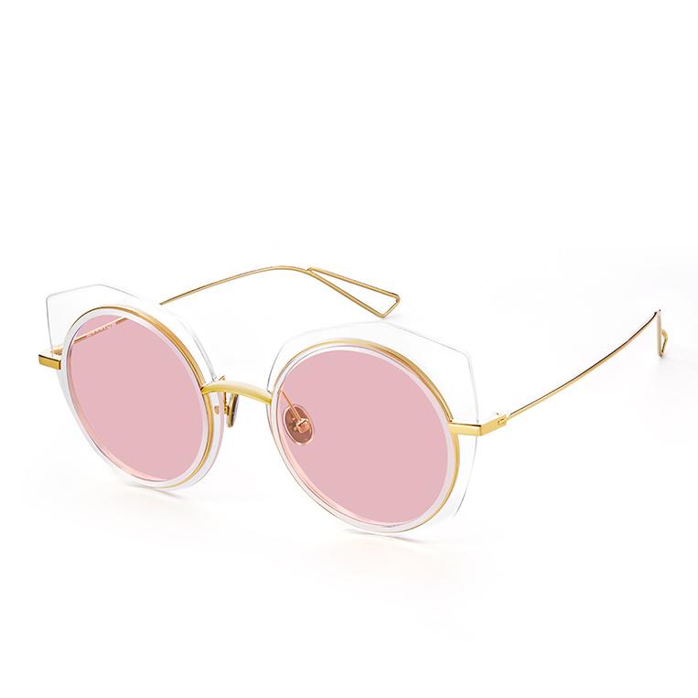 这款是音米为鞠婧祎量身定制的,猫眼的金属镜框俏皮灵动,加上粉色的镜片着实是让人喜欢,充满了浓浓的少女情怀,非常适合甜美风格的女生。