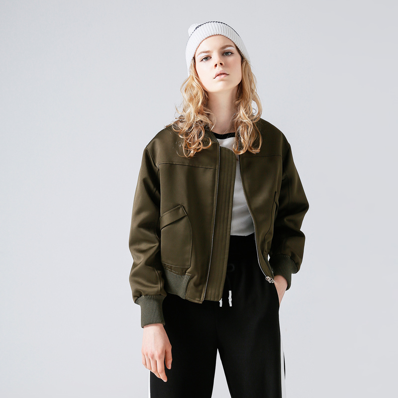 对于青春的妹纸来说,棒球服就是青春的象征,不管是时尚的贴布还是典雅的绣花元素,搭配上棒球服都有一种别样的味道。宽松版型的棒球服藏肉效果极佳,结合螺纹的立领设计干练自信中透出轻运动的活力气息。