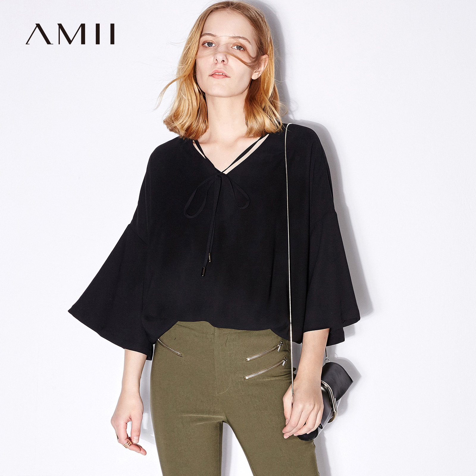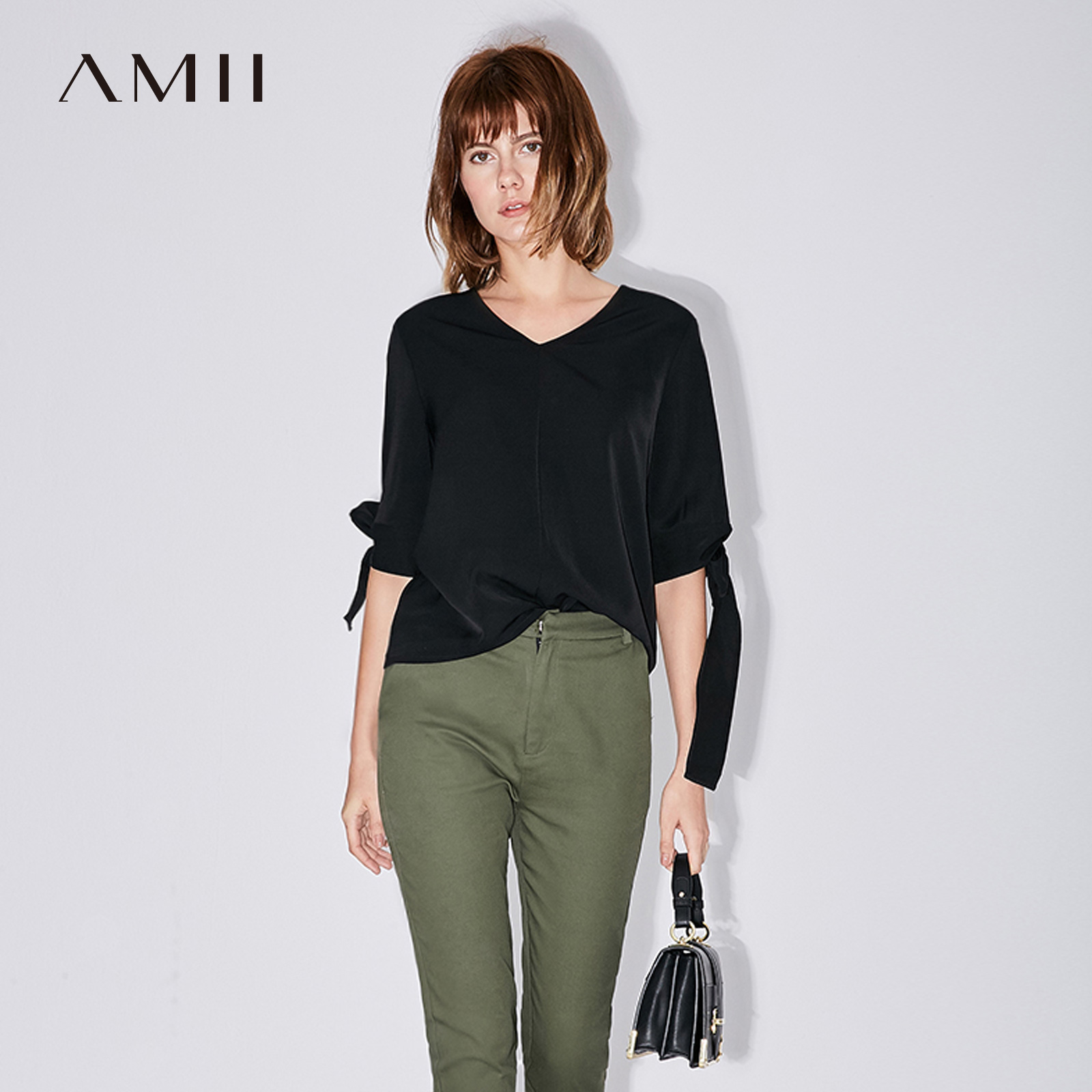 雪纺面料,手感清爽舒适,色彩自然,不易打皱,穿着有型,五分中袖修饰上臂线条,绑带设计,休闲飘逸。