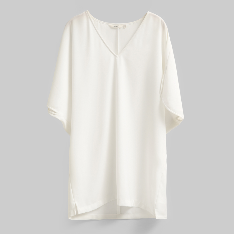 宽松飘逸的雪纺,,巧妙立裁,显瘦脸型的V领,中长廓形,更是巧妙优化身材。