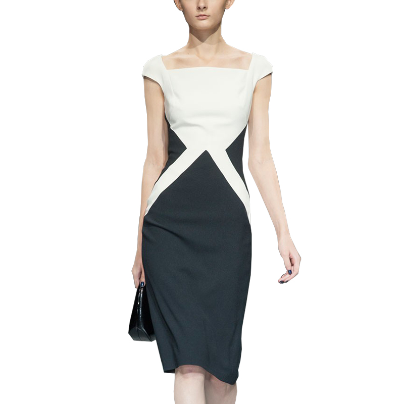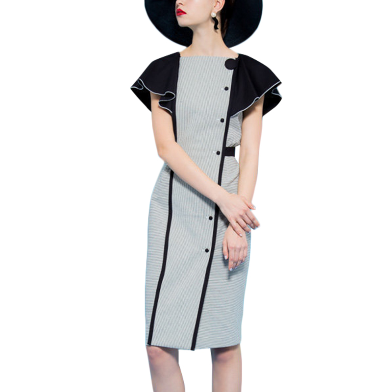 MeetMetroOL职业短袖修身一字肩连衣裙女夏季2017新款中长款裙子