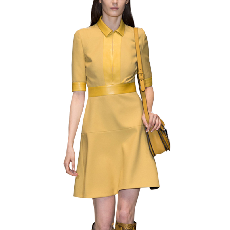 MeetMetro欧美女装中袖衬衫裙修身显瘦皮裙A字连衣裙春秋2017新款