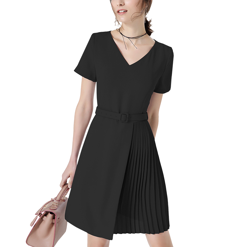 MeetMetro欧美V领显瘦黑色连衣裙女夏季2017新款气质名媛a字裙子
