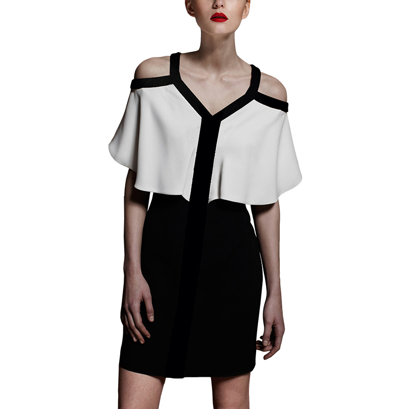 MeetMetro欧美气质V领修身显瘦不规则连衣裙夏季2017新款女装裙子