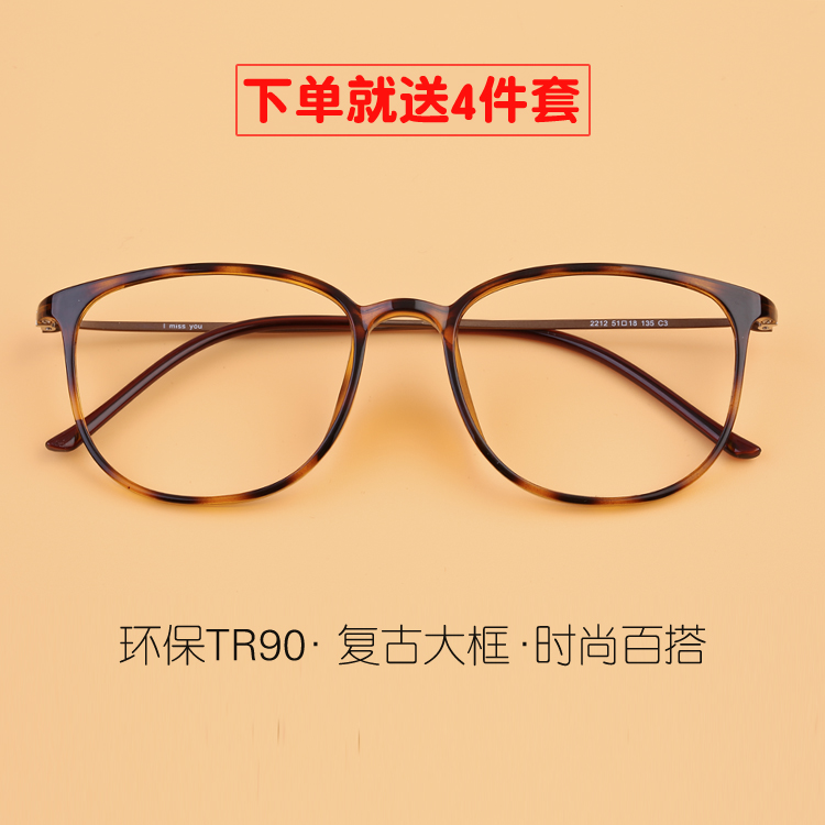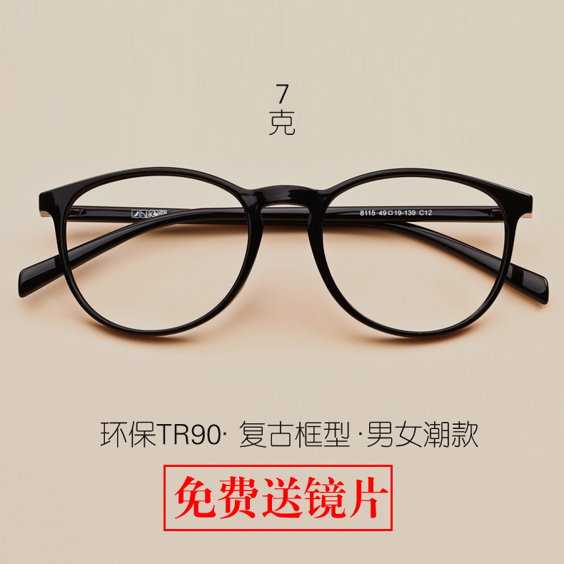 复古平光大框可配近视圆框TR90超轻眼镜框女韩版潮防辐射眼镜架男