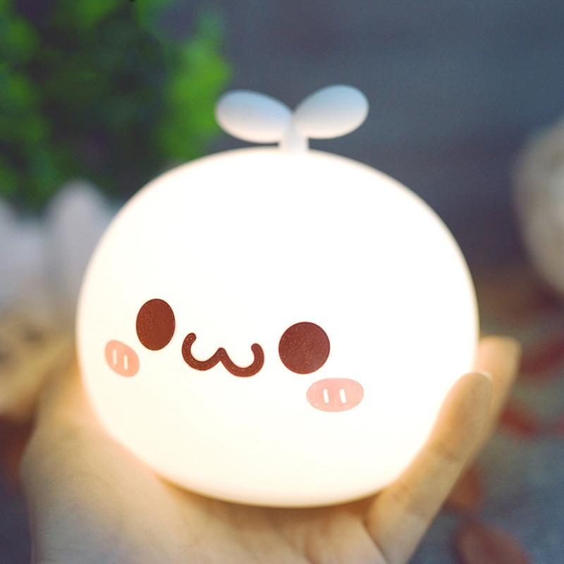 一盏能照明、能卖萌、能把玩的颜团子小夜灯,硅胶材质,触感柔软,还有七彩光晕,陪你度过每一个呆萌夜晚。