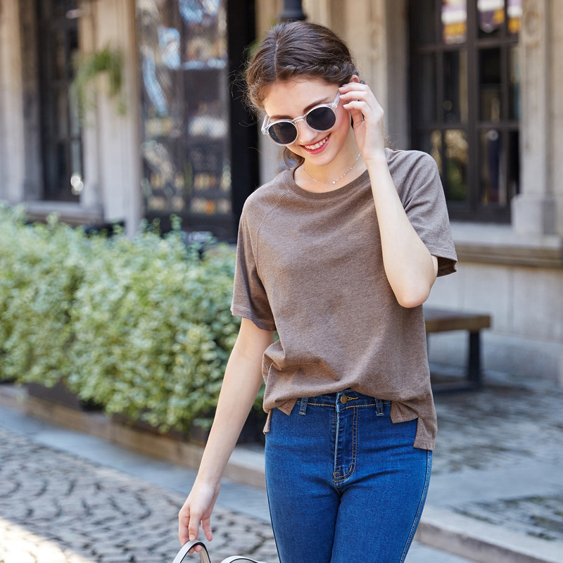 唐狮宽松纯色t恤女短袖上衣女夏2017新款韩版百搭衣服白色打底衫
