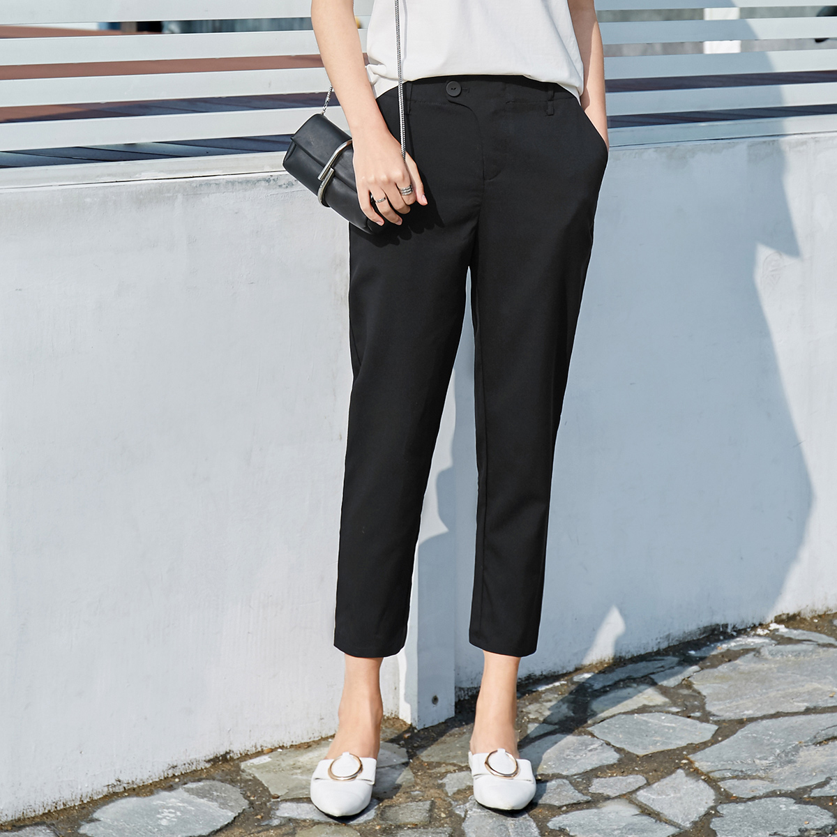 对白2017夏装新款铅笔裤 简约纯色九分休闲裤女 时尚百搭修身裤子