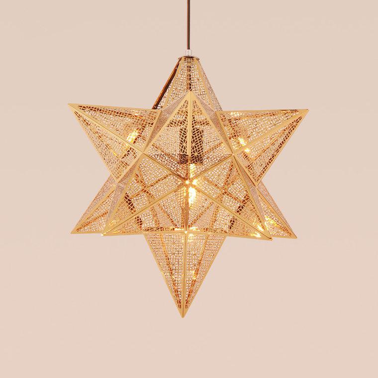 然后是这款金银星星吊灯,灯具采用精美的北欧设计,简单雅致却也独具品味。优质铁艺灯体,精湛烤漆工艺,创意精美造型,为房间提供柔和独特的灯光,同时它独特的灯体造型能很好的装饰房屋,为家居整体风格加分不少。