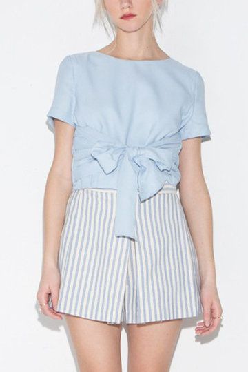 Yiner的这款白色V领T恤,在领口处添加了蝴蝶结系带设计,一款简单略显乏味的单品T恤就变成了减龄利器,提升了俏皮可爱的气质,清爽的颜色也是特别适合夏季的单品哦。