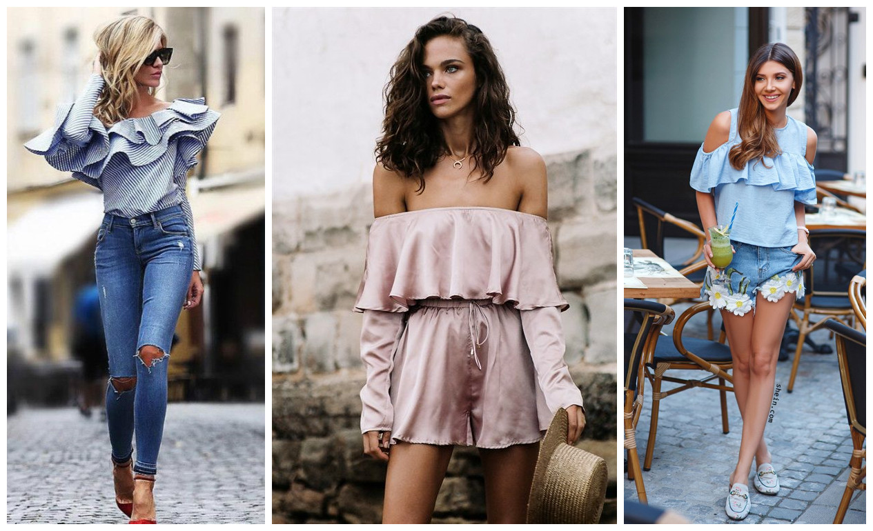 聊到荷叶边,不得不谈谈露肩设计。夏日里,小露香肩加上俏皮的荷叶边,可是直男无法阻挡之利器。荷叶边是个可攻可守的元素,搭配上绚丽的色彩显得俏皮可爱,搭配柔软布料和妩媚的色彩,又可变身性感女神。